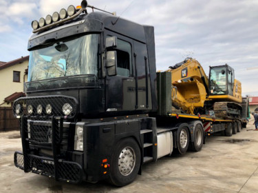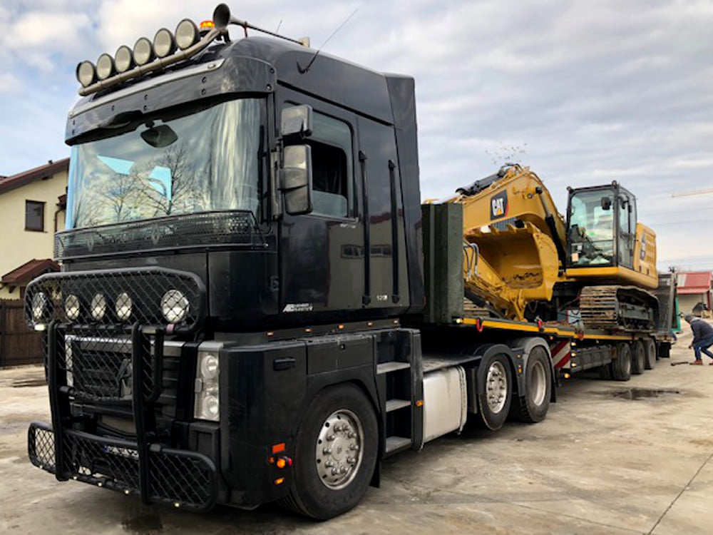 transport pe trailer, transport agabaritic, transportul utilajelor de construcții sau agricole, transportul utilajelor industriale, al confecțiilor și structurilor metalice, dar și servicii de tractare.